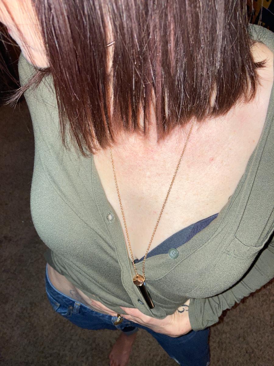 SAMANTHA: My husband has been begging me for years to post on this site, and I finally agreed to let him do something for his 50th birthday. I figured the pictures were tame enough, and who knows, it might be fun. If nothing else, it's definitely something different for me and gets this mid-40s wife a little out of her comfort zone. He can explain the story to you, but I do love the necklace vibrator he got me. He says we'll probably get a mix of cool responses and creeps, so please try to be respectful (funny doesn't hurt either). We made an email we both can check.