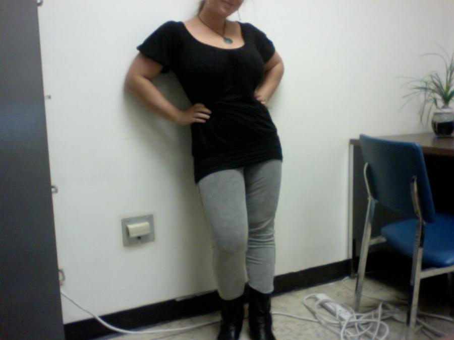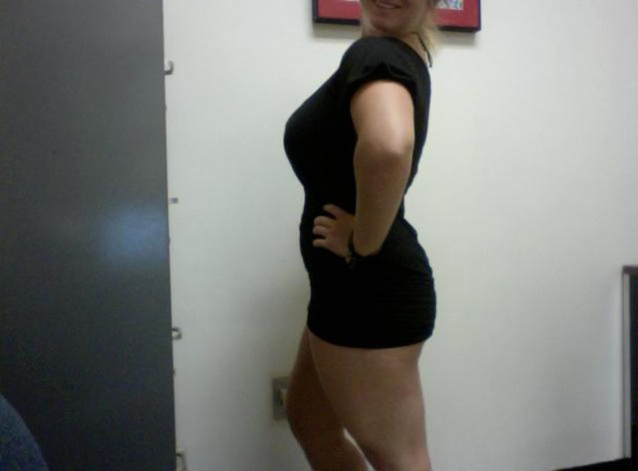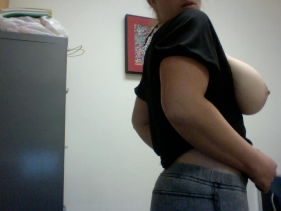 She is always horny since posting here. Last Monday she was bored at work and took her tits out to make the day go by in a whole new light.