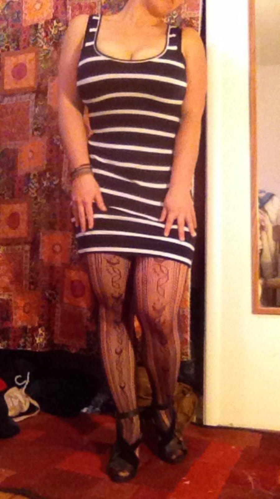 She is always horny since posting here. In this set of photos she has on some nylons which were requested by a fellow TODP-ER who has a fetish for that.