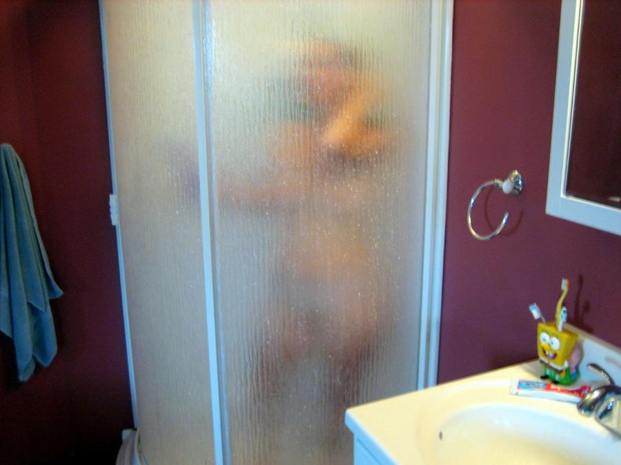 Everyone liked out caught photos of my wife in the shower last dare behind the glass.