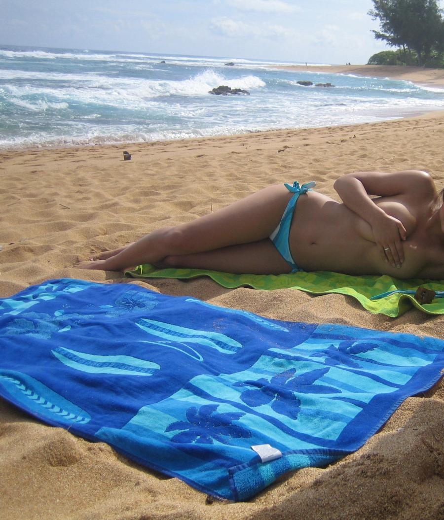 This is my wife of 3 years this past October. We have grown to love the site and have fiddled with the idea of submitting something and now we finally are. These were taken at the beach outside our hotel, and as you can see she went topless for the first time. It was really fun.