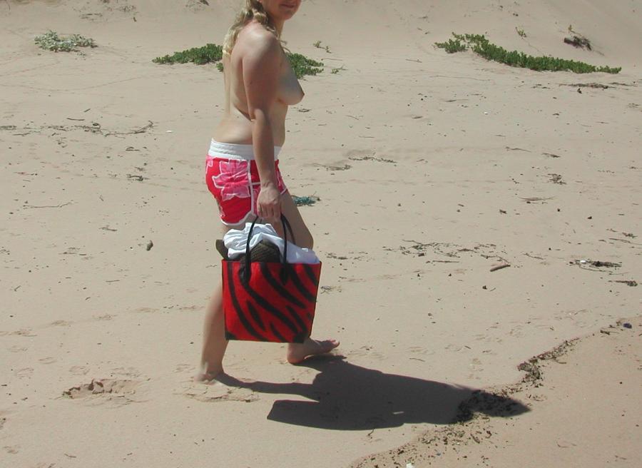The next post is dedicated to a fellow TODP poster (and new friend) Samantha. She looks awesome and sexy. My new name for her is Gorgeous. She is funny and sexy. The other day she send me a photo of her new t-shirt. I loved it so much that I told her I am going to get me the same shirt and take photos on the beach. She then dared me to post it on TODP for everyone to enjoy. So here are some photos of my shirt. What do you think of it? Any feedback are welcome, naughty or nice.