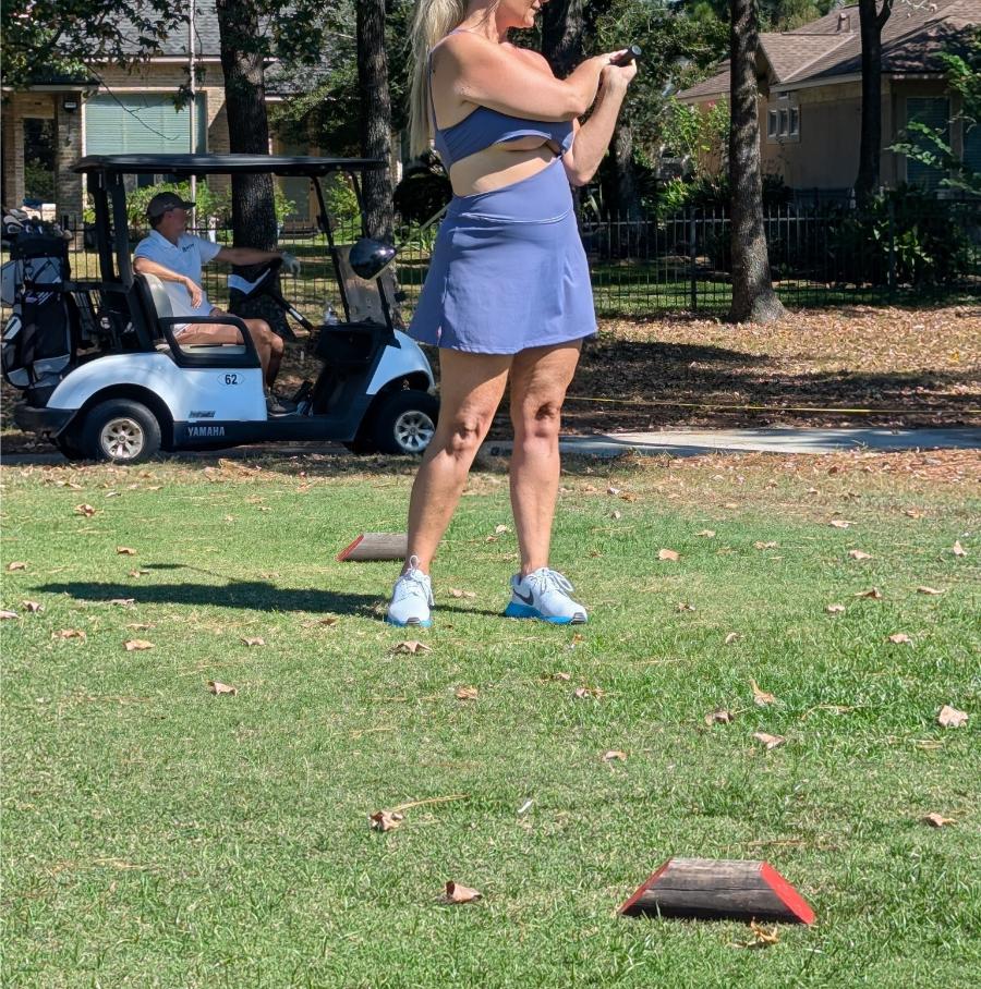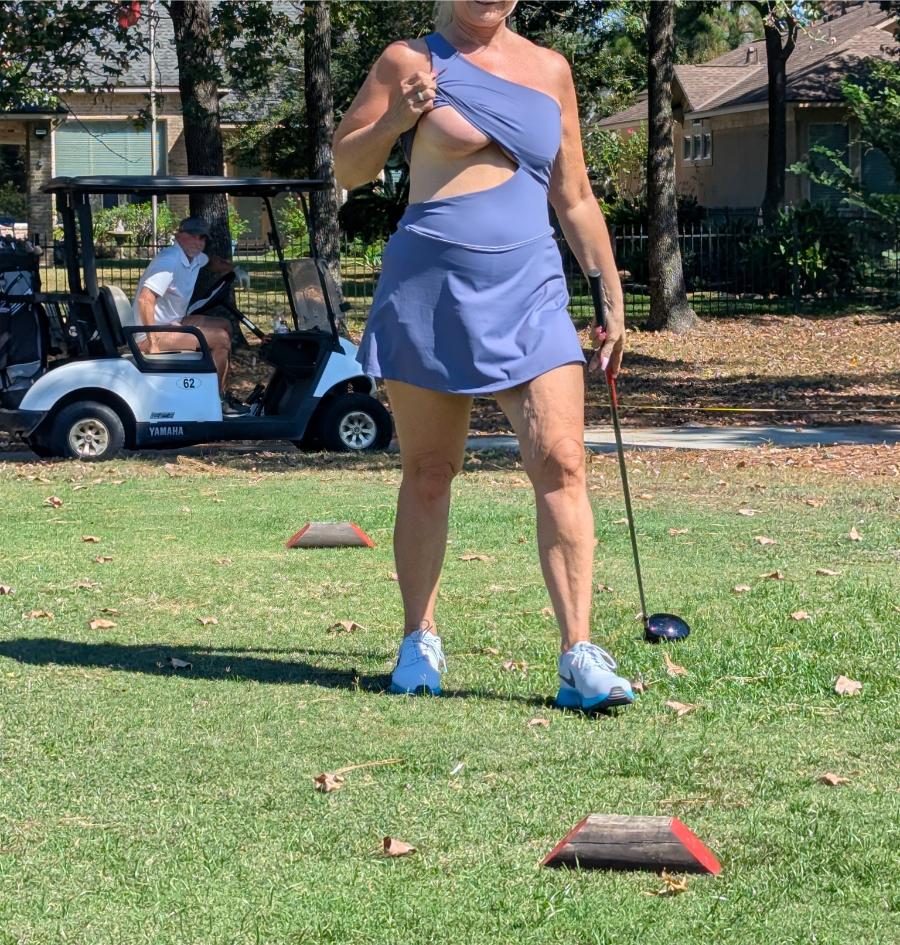 Golfing in some bottom tit dress, that took work to keep them in.