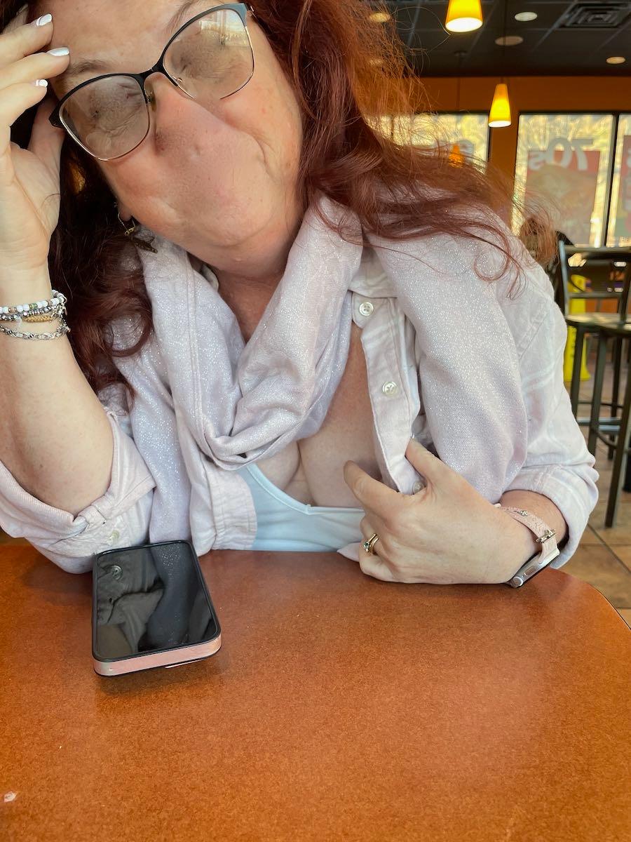 One day we went to the mall, it was a bit chilly so I wore my long coat. Once at the mall I let my hubby have a peek under my coat... seems I forgot to wear any clothes, just lingerie. Hubby was eager to get me home but i insisted on dinner first.