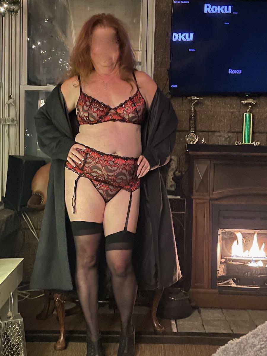 I teased him across the table. No photos while out, he left his phone in the car charging. Once home I stripped off he coat and let him see the fun outfit. Do you like?