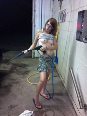 See More of Me... K & I - Hey fans!!! Were Back In Action!!! So we decided to start off with taking pics at the car wash since it is hot out side and good to get wet. My pussy got so wet, I wanted to fuck in the car wash, but didnt because it was getting very late. We then got finished washing up and headed to get gas. The gas station pics will be up next, we are leaving u so curious. Plz write to us with your request and comments at: