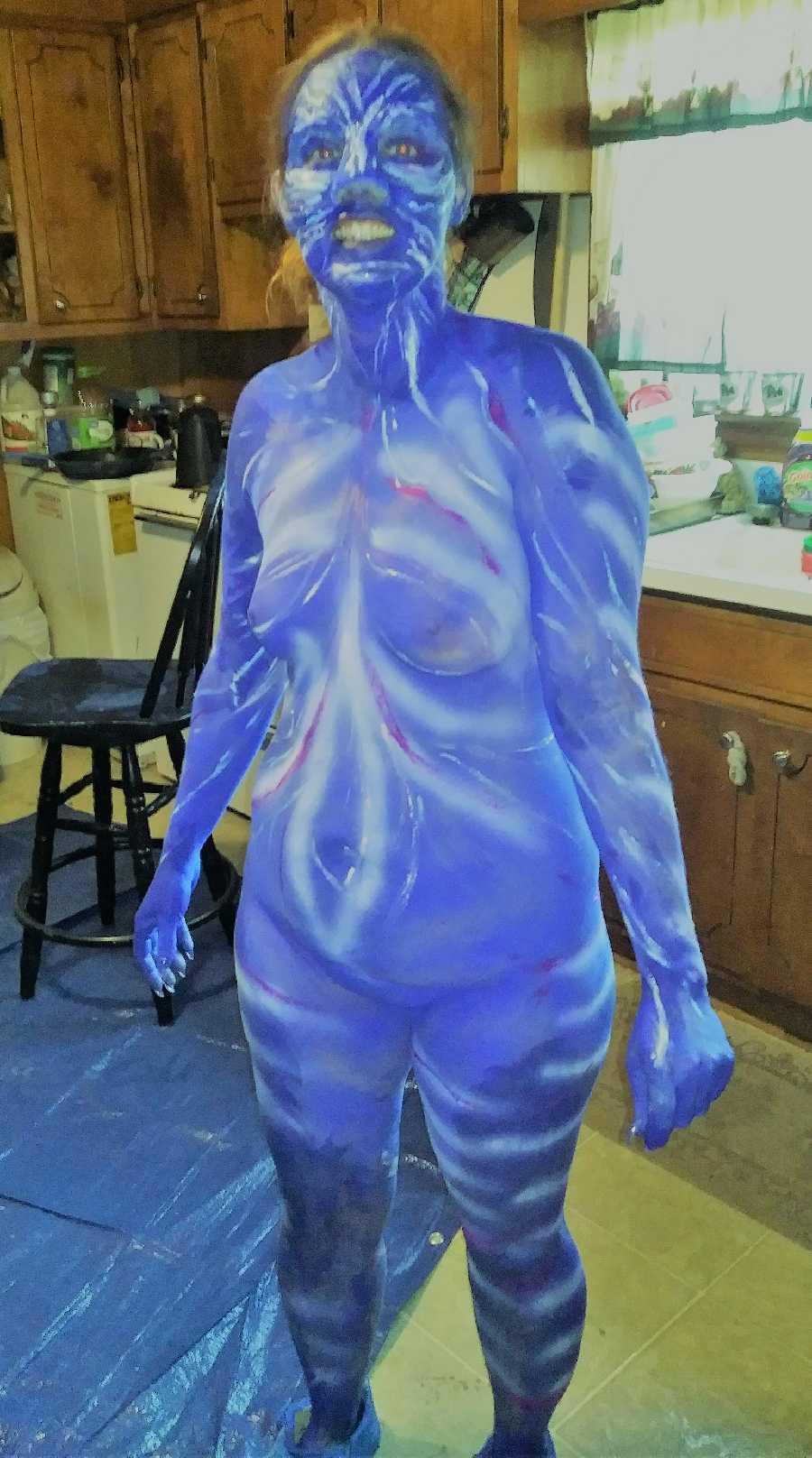See More of UsHubby dared me to go to a Halloween party in nothing but bodypaint and a peice of leather covering me. He paid a stranger to paint us both, after the party I was wet as hell (he was leaking everywhere) so here is a clip of his Tequila shot when we got home.