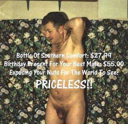 Priceless Picture - Anna & Ex Boyfriend - Hi - here is a picture of my bum taken 3 years ago and (below) this is my ex boyfriend Nick. He stripped naked as a dare at my 40th birthday party to embarrass me, but I got my due revenge. This pic is now on 200 priceless pic websites and has appeared in a censored version in the UK national press, the Daily Mirror and the Sun.